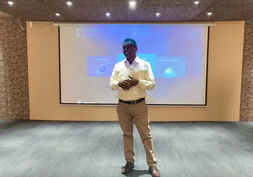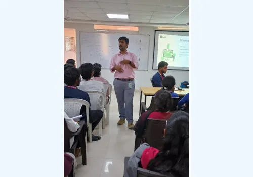 Mr Roop Kumar Raju, Vice President, CtrlS addressing students during the pool campus event at GNI for Engineering and MBA Graduates